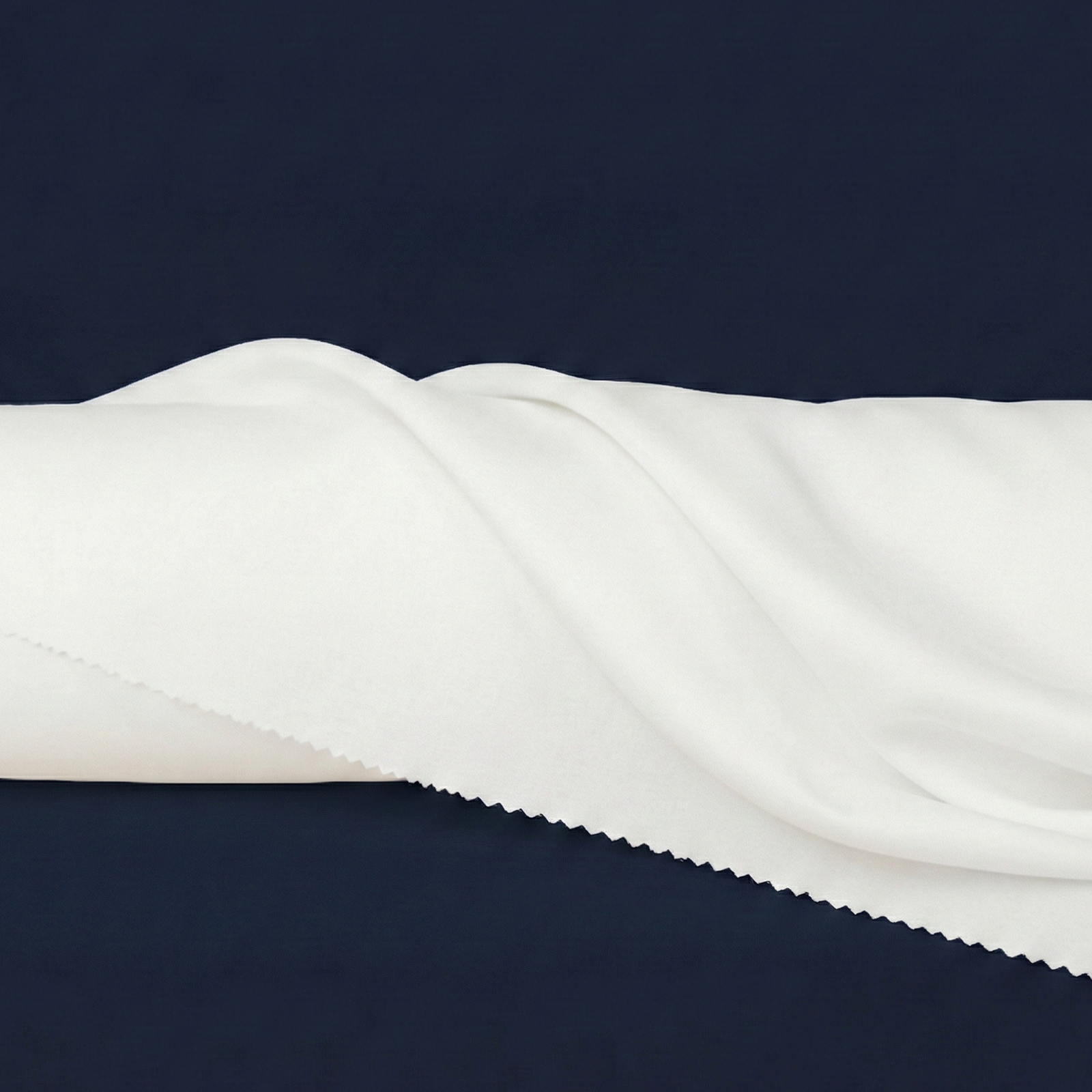 قماش أبيض فاخر بسمك أعلى وملمس ناعم يمنح الثوب ثباتًا وأناقة رسمية بدون شفافية.